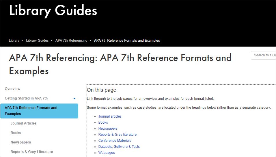 Library Guides: APA 7th Referencing: APA 7th Reference Formats and Examples
