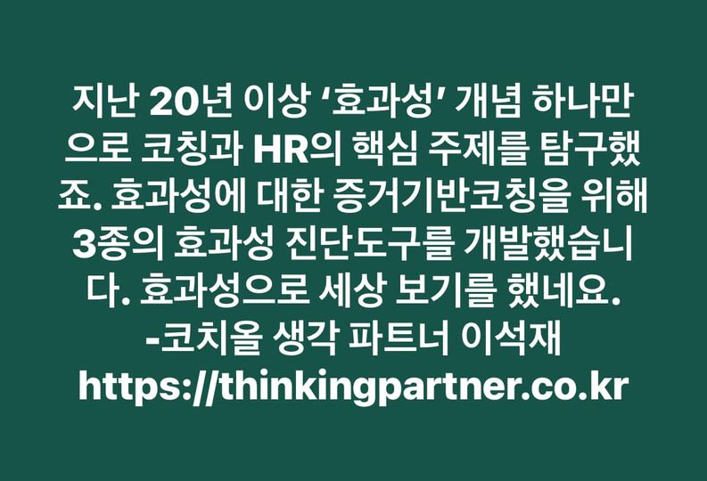 * 효과성의 개념과 이론에 대한 참고도서: 이석재(2023). 현장중심 코칭심리학. 서울: 학지사.