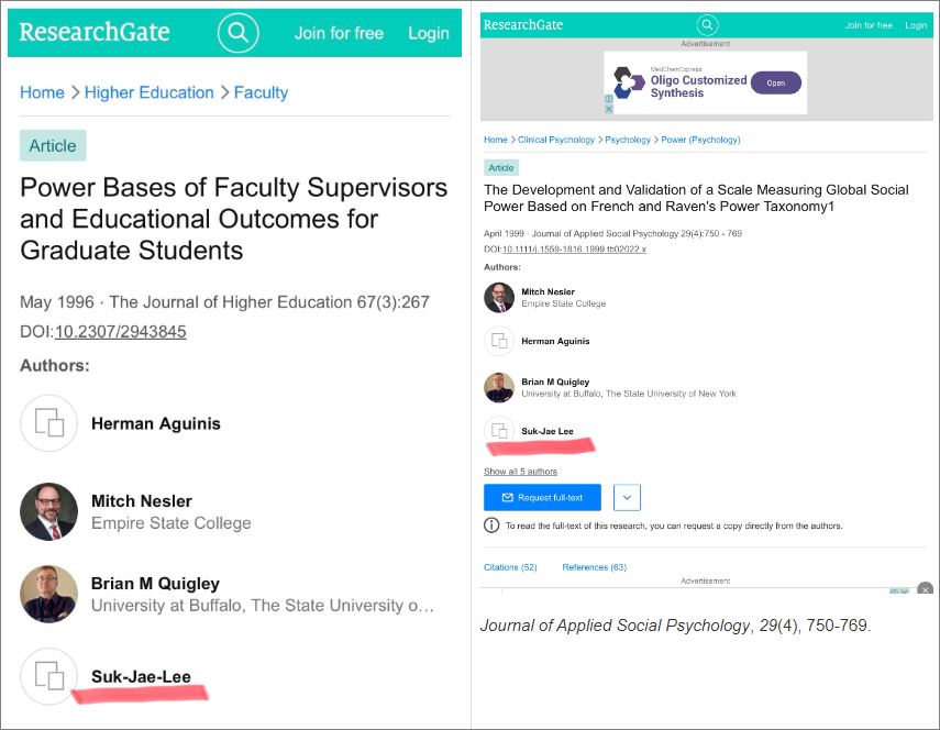 Reserch Gate에 들어가 보니 박사과정 유학시절 지도교수님, 동료들과 학술지에 발표한 아트클의 일부가 소개되어 있네요. 총 8편을 SSCI 학술지에 발표했었죠. 그중에 제1저자로는 4편을 썼습니다. 지금은 세상을 달리하신 Jim Tedeschi 지도 교수님이 그립네요. 모두 추억 거리, 옛 이야기입니다. 실험사회심리학을 하고 싶은 열정 충만했던 시절이었죠.