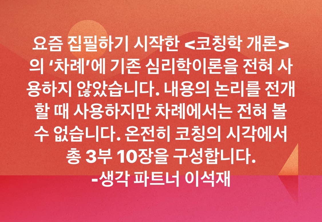 5. 코칭학 개론: 총 3부 10장으로 집필 중