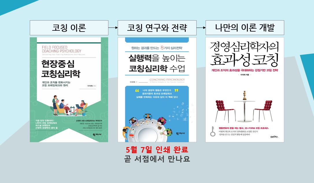 2. 이석재(2024). 실행력을 높이는 코칭심리학 수업. 서울: 학지사.
