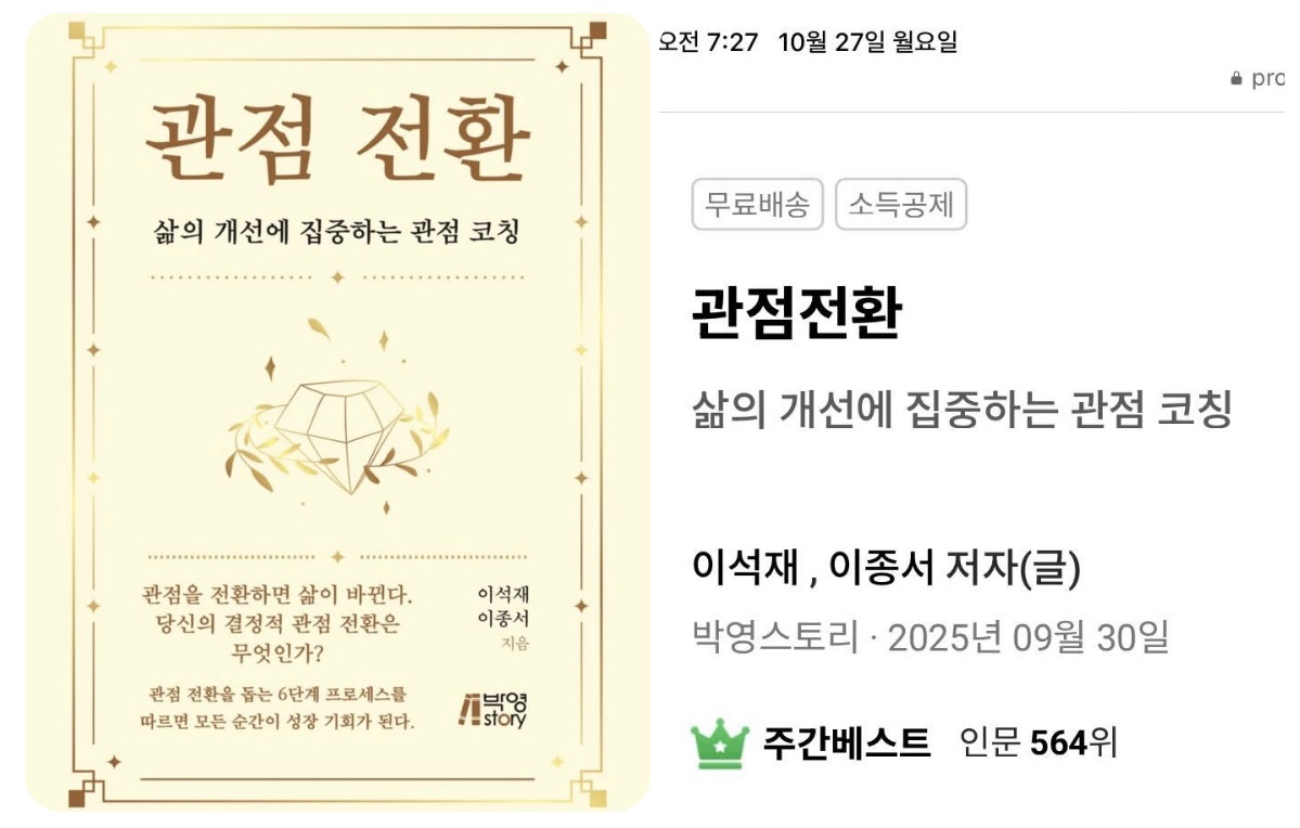 | 관점 전환 출간 소감 (0) | 2025.10.19 |