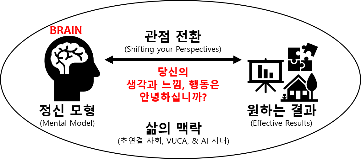 1. 생각 파트너는 지난 2002년 코칭 시작 후 12년이 지난 2014년 <경영심리학자의 효과성 코칭>을 출간하며 '개인, 팀과 조직의 통합적 코칭이 새로운 길이다'라고 주창했습니다. 12년이 지난 2026년 뇌신경학-인지과학, 효과성 코칭 방법론을 전일적인 효과성 관점(Holistic Effectiveness Perspective)에서 종합해 통합 코칭 시스템을 정립했습니다. 효과성 코칭 방법론으로 전개하는 멘털 모델링 코칭은 변화(change)보다 변환(transform)을 이루도록 돕습니다.
