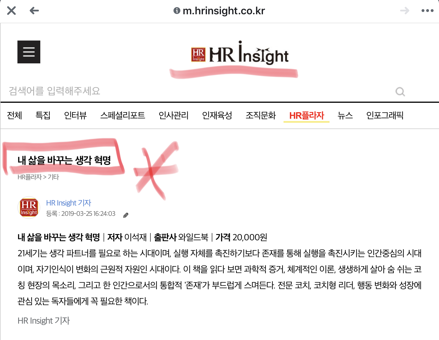 HRinsights 편집장님께서 4월호에 ‘내 삶을 바꾸는 생각 혁명’을 신간 도서로 소개해 주셔셨습니다.