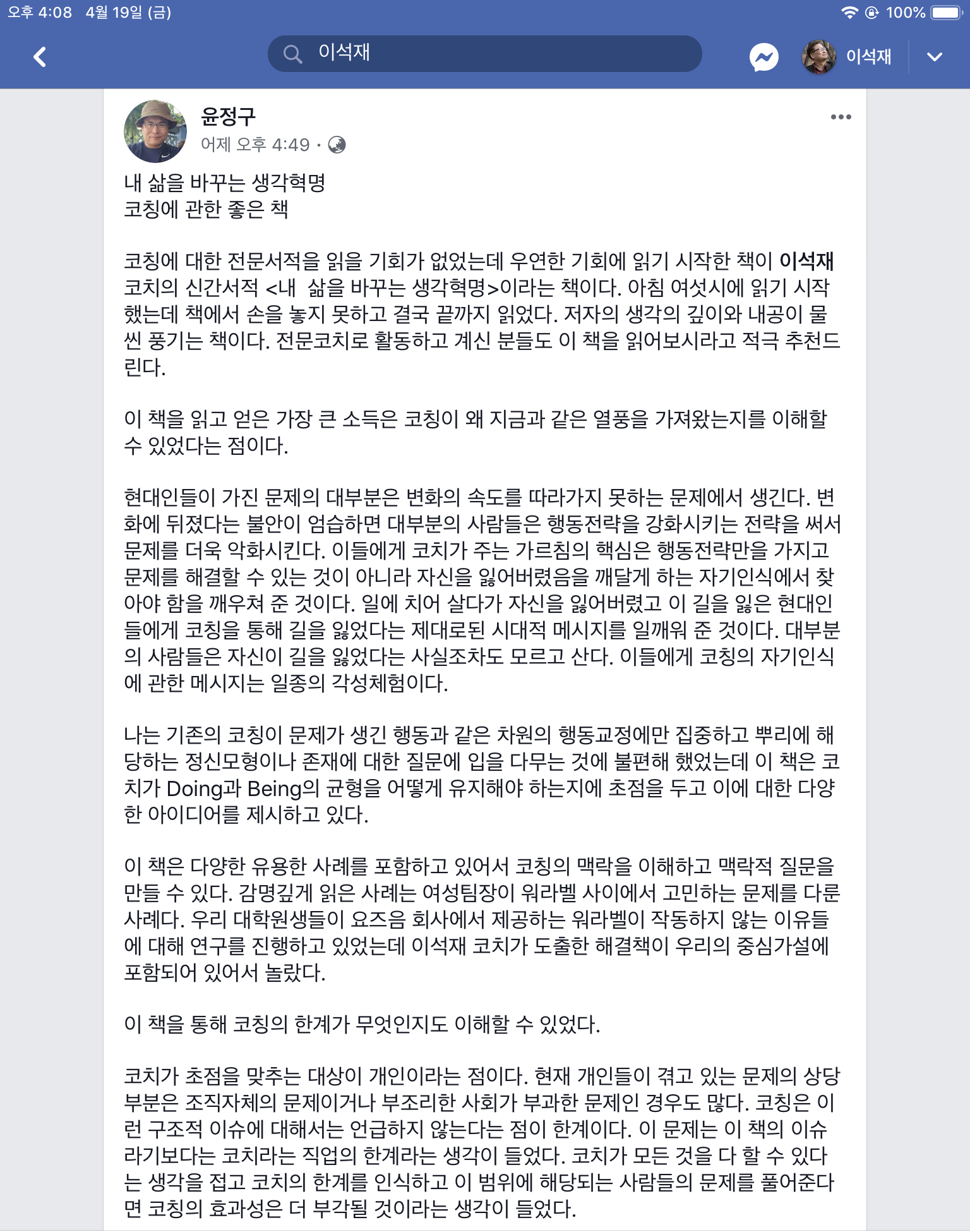 | 한국코치협회 뉴스레터, 신간 코칭 도서 소개 (1) | 2019.04.05 |