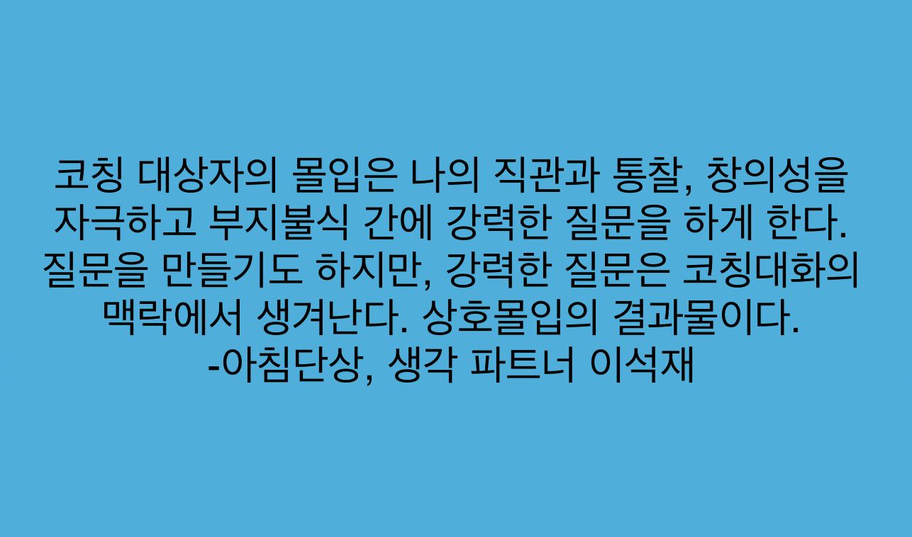 코칭을 하다보면, 코칭 대상자로부터 "어떻게 하면 질문을 잘 할 수 있나요? 비법을 알려주시겠습니까?"라는 요청을 받는다. 질문은 만드는 것일까? 아니면, 저절로 생겨나는 것일까?