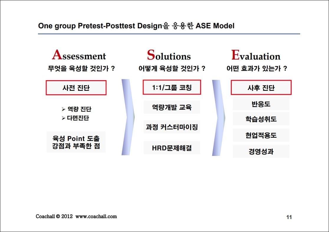 컴퓨터 파일을 뒤지다 보니 지난 2012년에 코칭모델을 개발하면서 정리했던 자료가 있네요. 당시에 인지행동적 코칭에 관심을 갖고 증거기반코칭evidence-based coaching을 시도할 때입니다. 기본적인 준실험적 설계를 주로 할 때였습니다. 한국코치협회에서 발표했군요.