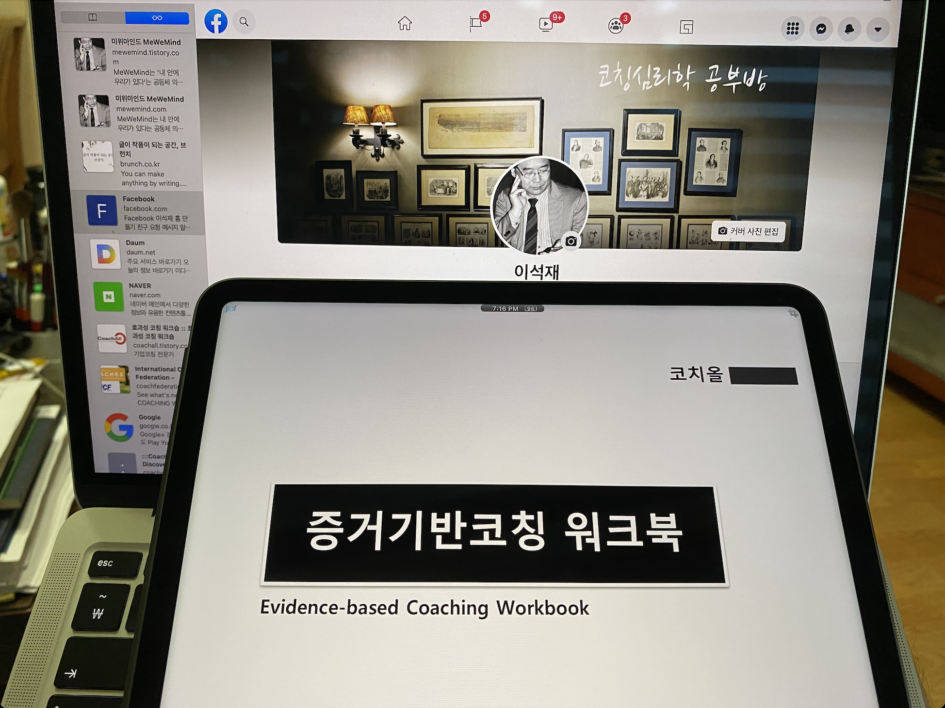 주말에 온통 집중한 것은 <코칭심리학 공부방>과 <증거기반코칭>, <증거기반코칭 사례분석> 등 세 공부방을 연결 과정으로 완성시키는 것입니다. <코칭심리학 공부방>은 코칭을 심리학의 여러 이론 관점에서 탐구하죠. 특히 코칭심리학을 학습하면서 자기만의 코칭 프레임워크를 개발합니다. 이를 현장에서 증거기반으로 실천하기 위한 실천과정으로 <증거기반코칭>을 공부합니다. 이에 대한 주학습 교재가 <증거기반코칭 워크북>이죠. 수차례 내용을 검토하고 오타를 확인했습니다. 마지막 단계로 <증거기반코칭>을 현장에서 수행한 <증거기반코칭 사례분석>을 탐구합니다.