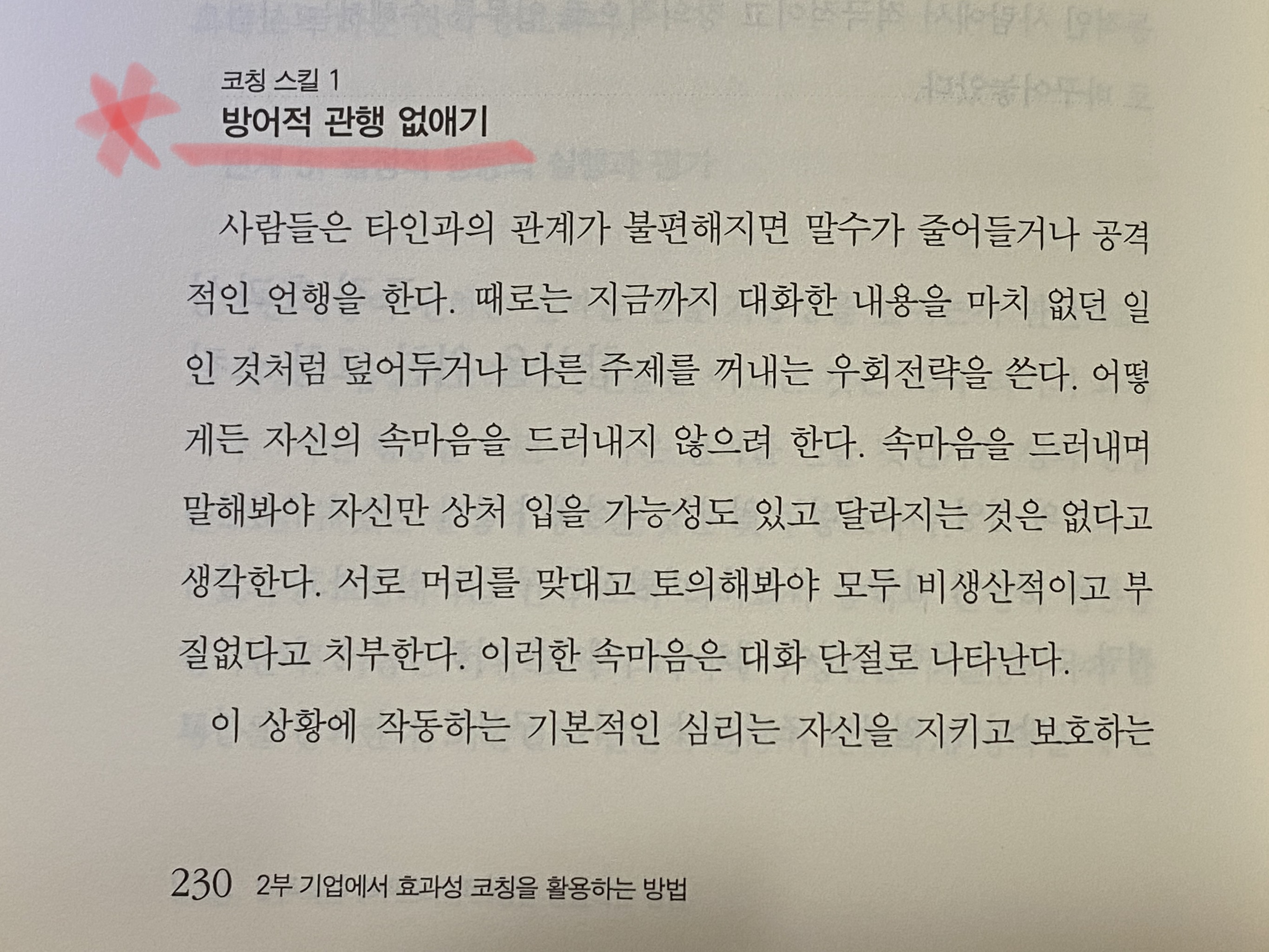 자기방어기제 51쪽~69쪽, 방어적 관행 없애기 230쪽~235쪽.