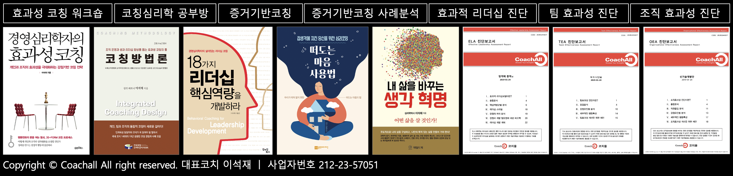 또 효과성 코칭 방법론을 정립하기 위해 개발한 3종의 효과성 진단도구(효과적 리더십진단, 팀효과성진단,조직효과성진단)를 통해 과학적인 방법으로 코칭을 실천할 수 있게 돕습니다. 아울러 공부방 참가자의 공부를 돕기 위해 생각 파트너의 코칭 관련 주요 출간 도서와 영어 논문을 읽기 자료로 추천합니다.