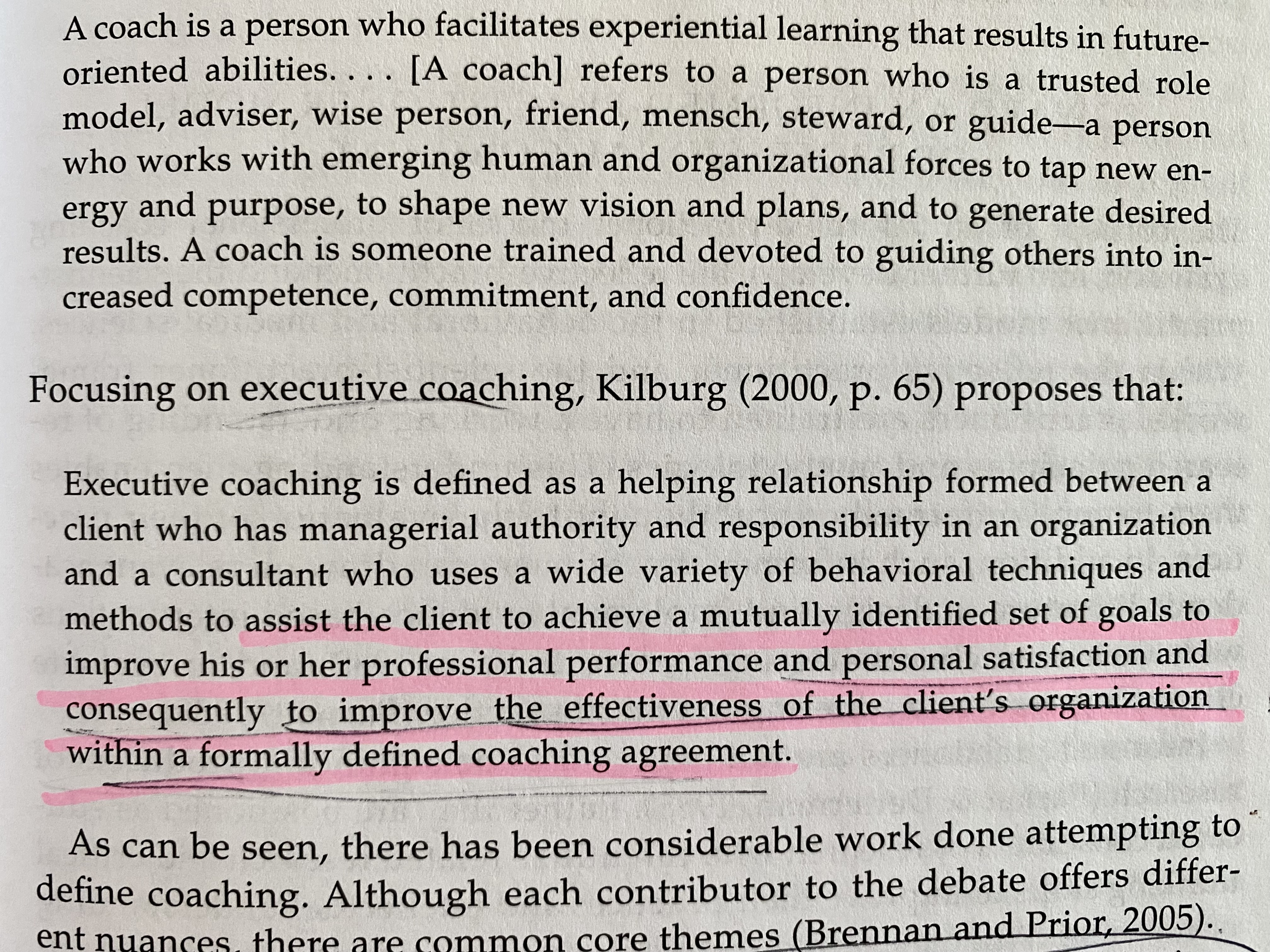 Kilburg, R. R. (2000). Executive coaching: Developing managerial wisdom in a world of chaos. Washington, DC: American Psychological Association.