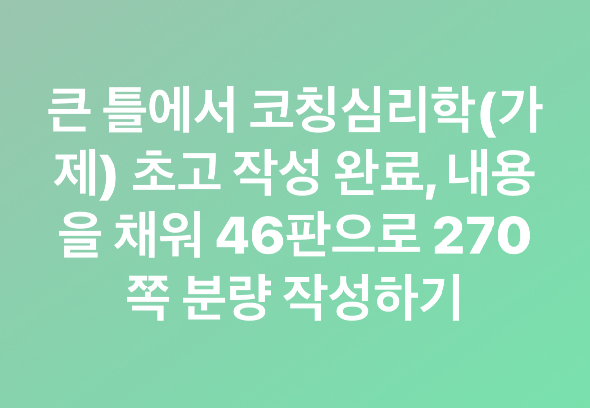 | 코칭심리학(가제) 책 쓰기 (0) | 2023.03.22 |