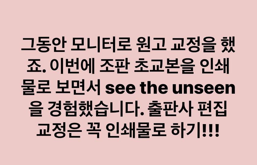 현미경의 눈으로, 달팽이의 속도로, 셜록 홈즈의 탐색 마인드로 교정을 보았네요. 월요일과 화요일에 한번 더 보고 출판사로 보내야겠습니다. 조판 교정이 마무리되면 소감문을 메모로 남겨야겠습니다.