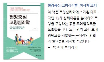 한국코치협회 8월 뉴스레터에 신간 '현장중심 코칭심리학'이 소개되었습니다. 참고바랍니다.