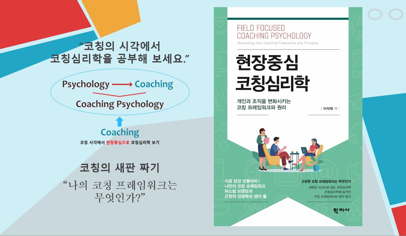 '현장중심 코칭심리학'(이석재, 2023)이 이러한 여정에 도움되길 소망한다. 참고로 효과성 코칭(이석재, 2014)은 연역법과 귀납법을 혼용해서 개발했다.