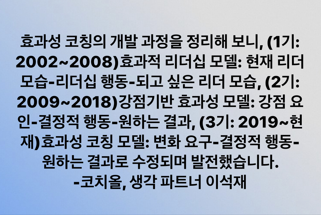 효과성 코칭에 관심 갖고 참여와 지원, 응원해 주신 분들에게 감사드립니다.