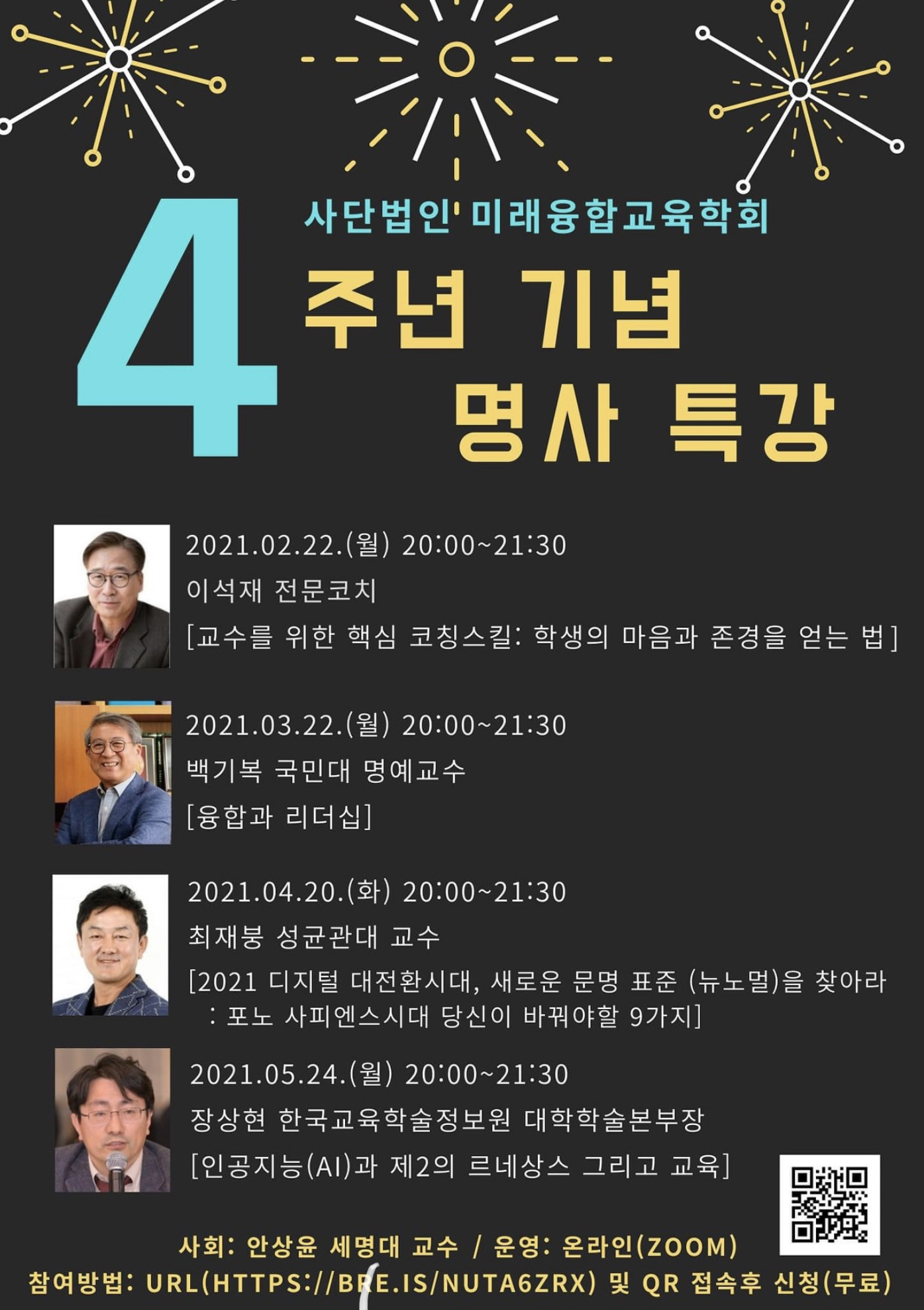 2021년 2월 22일에 (사)미래융합교육학회 창립 4주년 기념 릴레이 명사특강에 초대되어 강의했던, “교수를 위한 핵심 코칭 스킬: 학생의 마음과 존경을 얻는 법”이 유튜브에 있네요. 강의 동영상을 사전에 봐서 챙기지를 못했습니다. 안상윤 교수님, 동영상을 다시 볼 수 있게 해주셔서 감사합니다.