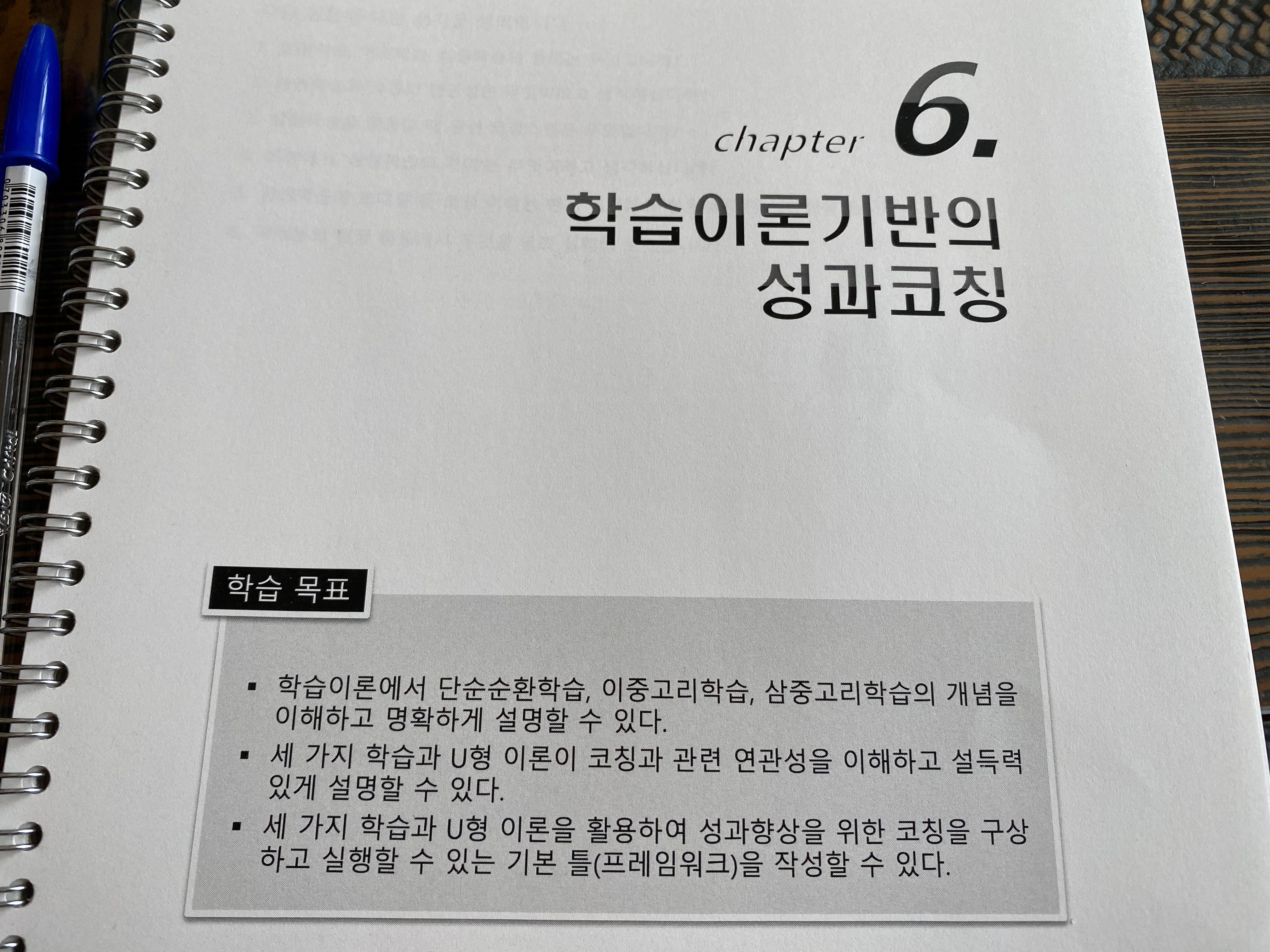지난 주에는 말콤 놀즈의 성인학습이론의 기초인 가정과 코칭의 가정이 갖는 연관성을 살펴보았다. 이어서 성인학습의 근간인 경험학습에 대한 이론과 모델, 변혁적 학습에 담긴 이론들이 코칭에 주는 시사점과 코칭스킬 등을 살펴보았다. 다음 주에는 학습이론기반의 성과코칭을 다룬다. 먼저 학습이 이루어지는 기본 원리를 탐구한 대표적인 연구들을 살펴본다. 이이서 조직학습에서 3가지 학습유형인 단순순환학습, 이중고리학습, 삼중고리학습과 코칭적 활용을 논의할 예정이다.